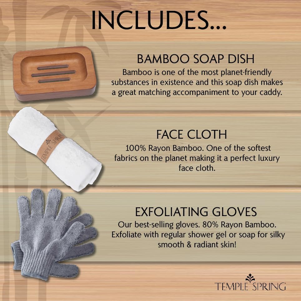 • INCLUDES MATCHING BAMBOO ACCESSORIES - Each purchase includes a matching bamboo soap dish, face cloth, and exfoliating gloves for added convenience. Pair this wooden tray with your favourite bathtub accessories to complete your bathroom tray setup.