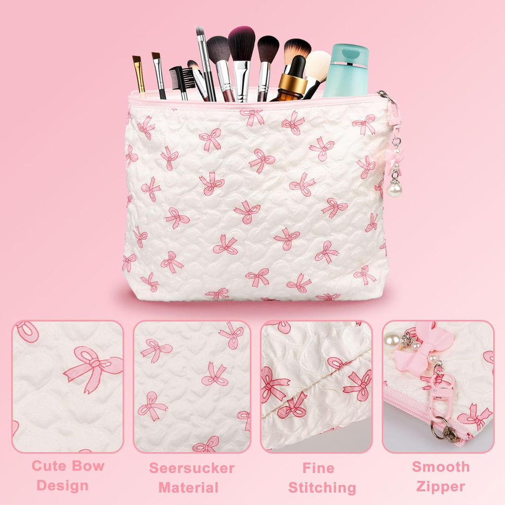 - âšăMakeup Brushes & Cosmetic Bag & Hair Bandă - 8 multifunctional makeup brushes for effortless everyday looks, a pink butterfly-patterned cosmetic bag for convenient storage of skincare products and makeup on the go, and a cute bow-knotted hair band for a secure hold. No more worries about wet faces and skincare products â the complete set is compact and portable, perfect for every moment of your exquisite daily routine.