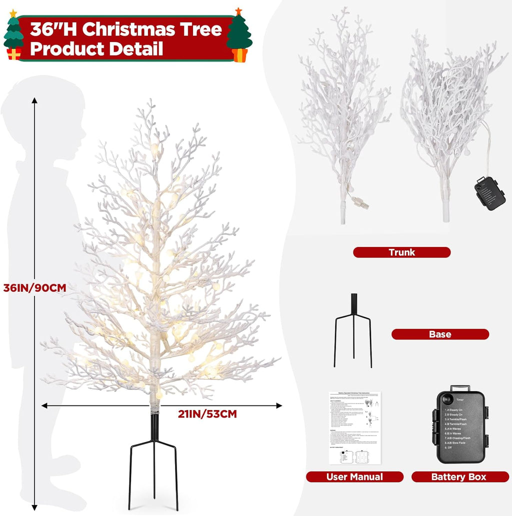 • EYE-CATCHING SNOWY CORAL MAGIC - Dazzle guests with this unique 36-inch glittered snow-flocked small Christmas tree! Mimicking soft coral tips under fresh powder, its realistic fluffy branches glow with 40 pre-lit LEDs (Warm White/RGB switchable). Be the envy of the neighborhood with a showstopping centerpiece that lasts all season